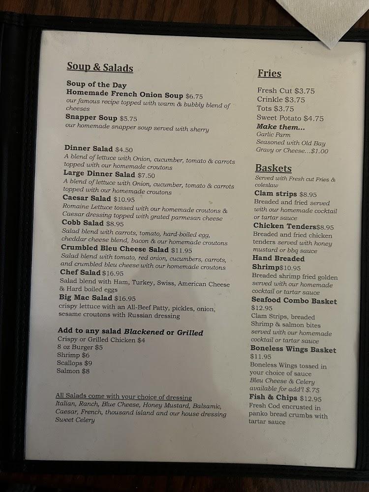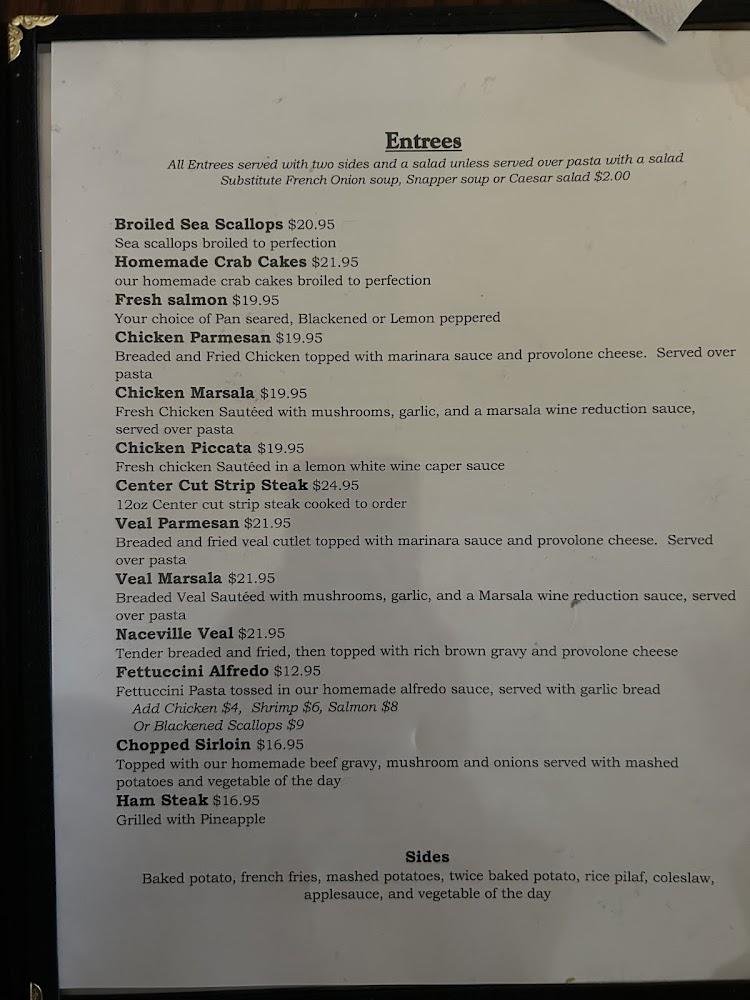 Dishes cater to diverse preferences, making it easy to find something for everyone. Light bites and appetizers, such as Drunken Clams and Clams Casino, add variety. Desserts entice with options that sweeten the meal perfectly. The menu features affordable pricing, ensuring guests can enjoy meals without overspending.